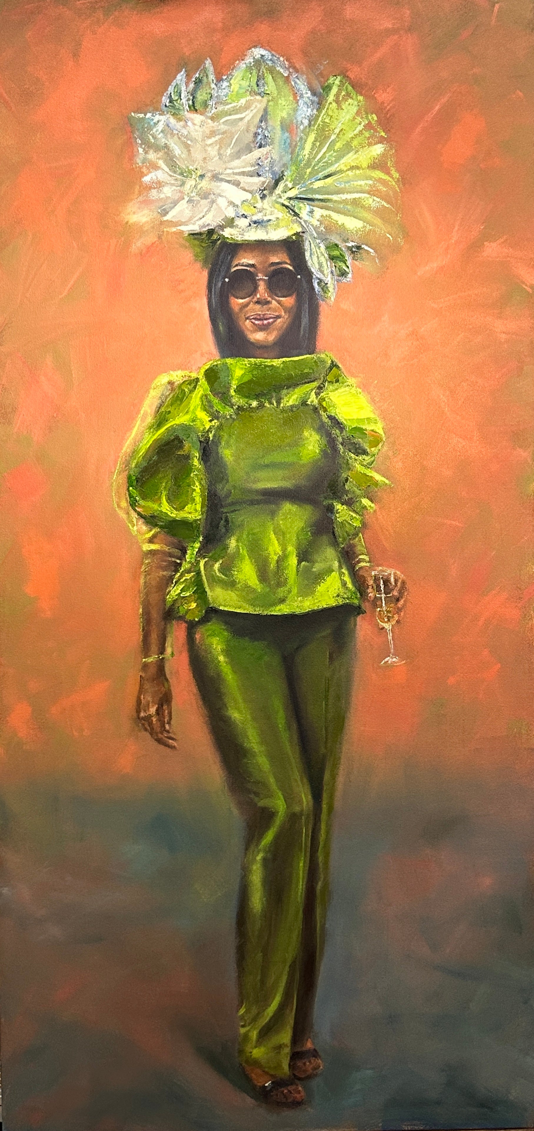In 2023, Paul Brourman and his wife Katie attended their first Kentucky Derby. While the main event was exhilarating, it was the spectacle of the Turf Club experience that caught Brourman’s artistic eye. One guest in particular stood out among the crowd.